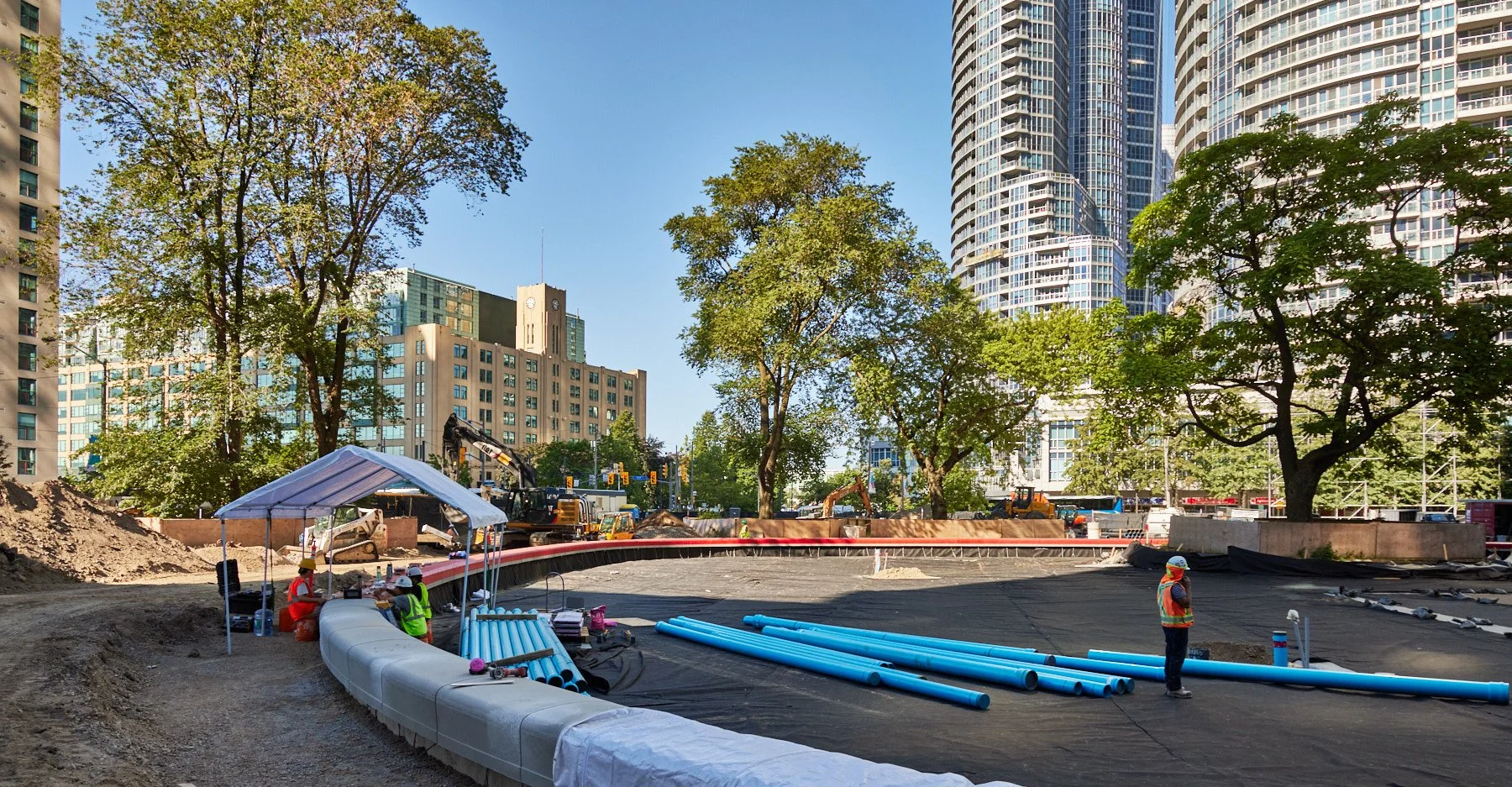 A good example of construction process photography is Love Park in Toronto, designed by CCxA. The imagery doesn’t just show progress, it reveals how a complex public space is assembled, from subsurface work and grading to hardscape installation. It gives clients and stakeholders a transparent view into how design is realized on site.
