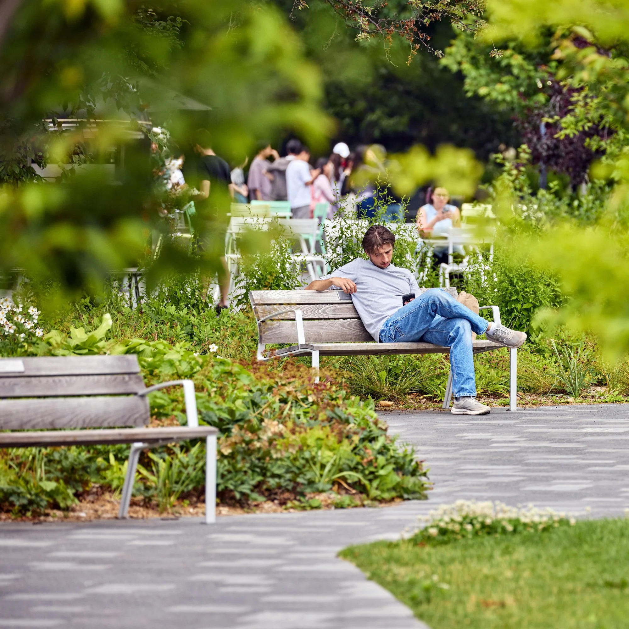 At the heart of the Landscape of Landmark Quality is a commitment to reclaiming the surface of the campus for people, trees, and public life. To achieve this, parking is tucked below ground, freeing the landscape above for promenades, gardens, and gathering spaces. This move transforms the space into a true pedestrian-first environment, restoring the campus’s sense of openness and dignity.