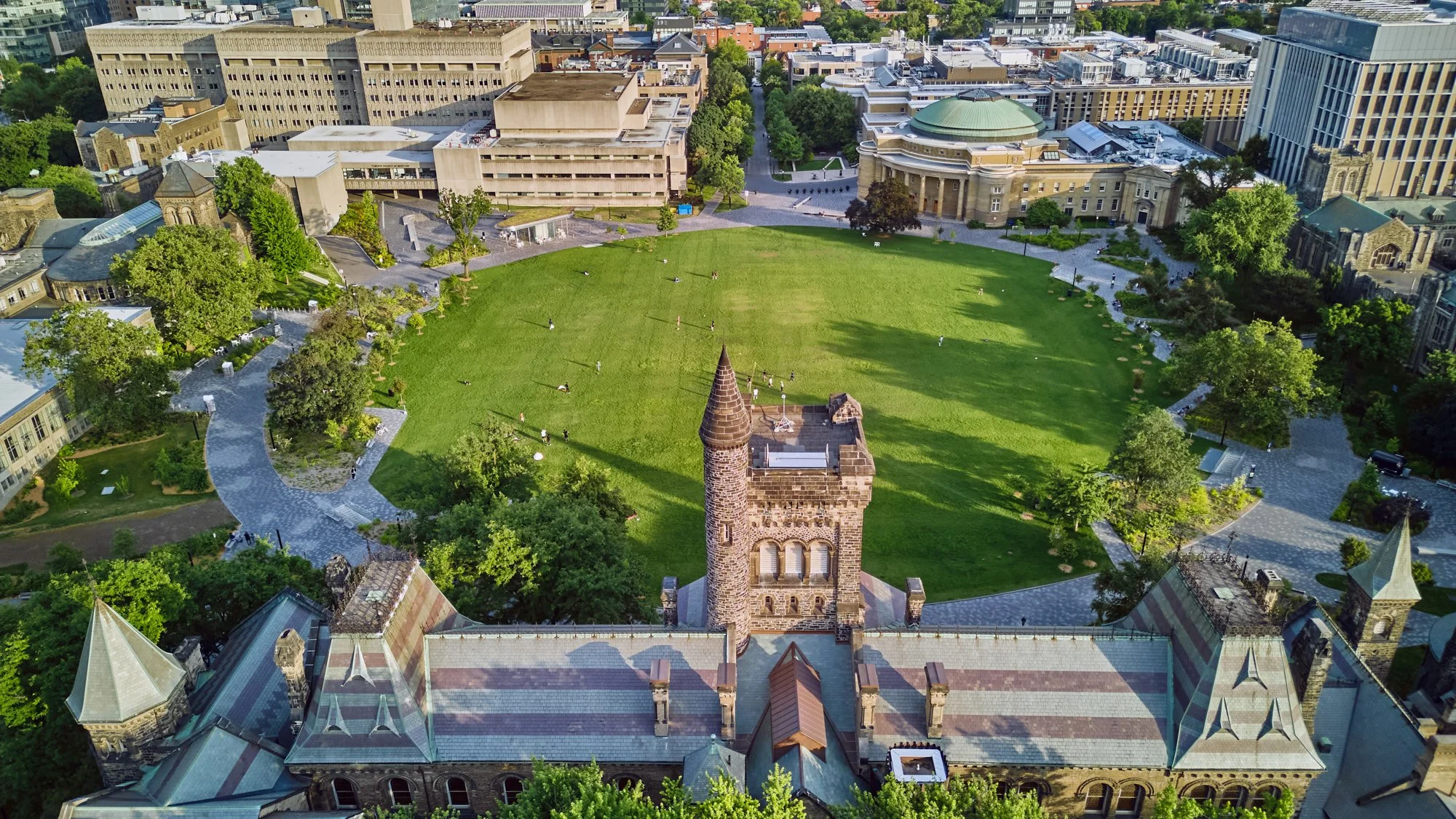 At the heart of the University of Toronto’s historic St. George Campus are four landmarks — King’s College Circle, Hart House Circle, Sir Daniel Wilson Quad, and the Back Campus Fields. These spaces, surrounded by heritage architecture and characterized by greenery, are the focus of the Landscape of Landmark Quality project, a major initiative of the University and one of the largest landscape infrastructure projects in Canada.